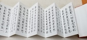 般若心経の小さなサイズの経本です。表紙の金襴は紺系との指定のみです。