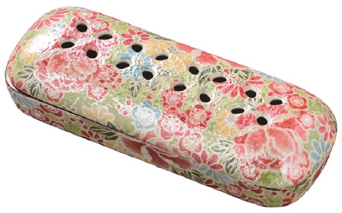 陶器 寝かせる線香皿【有田焼 花摘】小 四季友禅(網入)