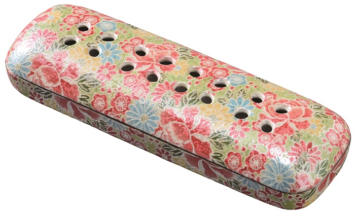 陶器 寝かせる線香皿【有田焼 花摘】大 四季友禅(網入)