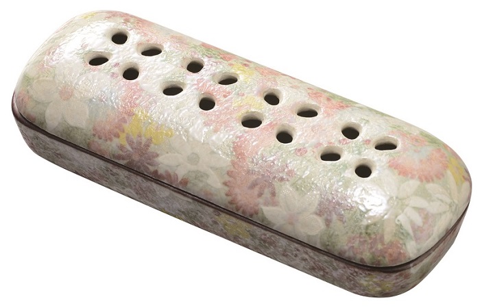 陶器 寝かせる線香皿【有田焼 花影】小 ききょう(網入)