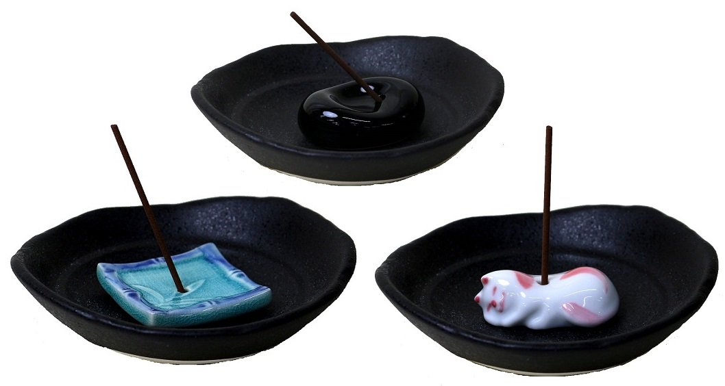 四角・楕円・猫の3点セットです。香皿(千の花)が付いています。