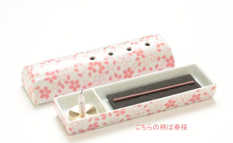 陶器 線香皿セット【有田焼 春桜】ろうそく立・ろうそく・線香付き