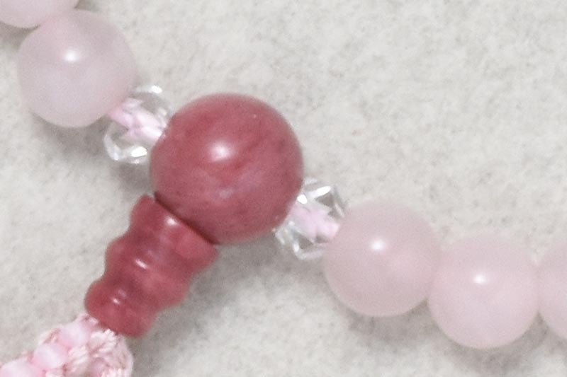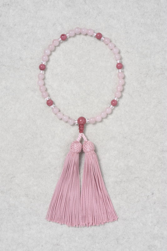数珠 女性用 片手【ローズクォーツ7mm玉 ピンクエビゾード】正絹頭房