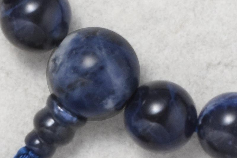 ラピスラズリを構成する鉱物で、深い青色が特徴です。アフリカ産の比較的色の濃い玉を使用しております。