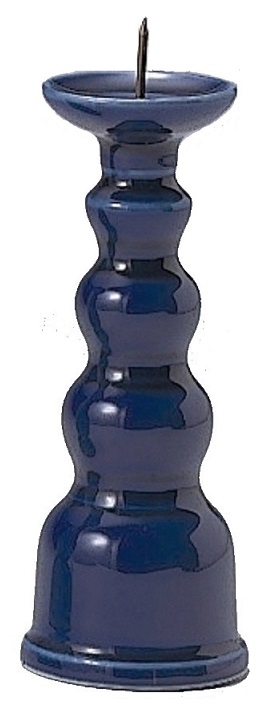 陶器 ローソク立 瑠璃色 3寸
