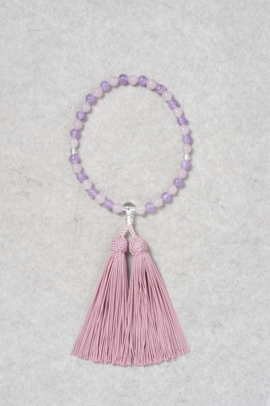 数珠 女性用 片手【藤雲石7mm玉 ローズクォーツ交互】正絹頭房