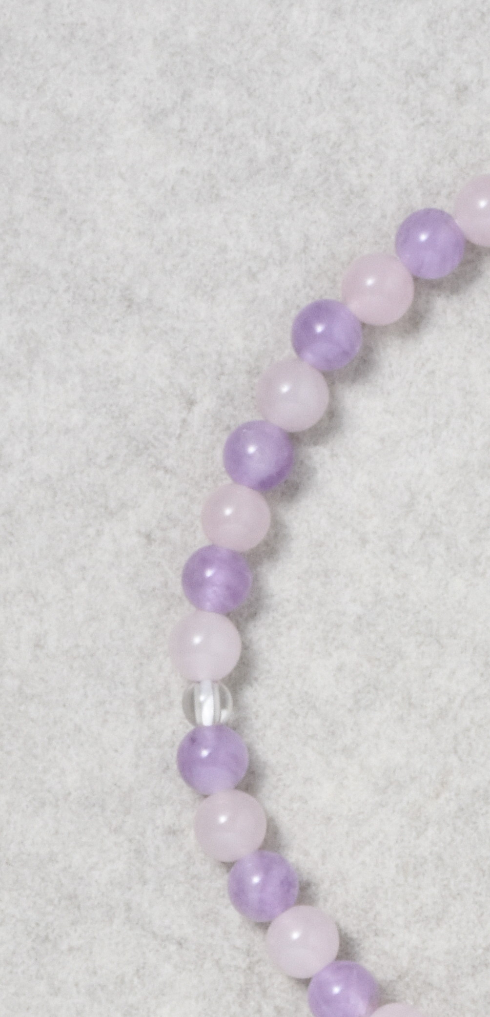 京の都にちなんだ【京景色シリーズ】「石(いし)」を「交互(こうご)」に「いれた」念珠で「いこい」念珠と名付けました。可愛らしいパステルカラーで仕上げております。