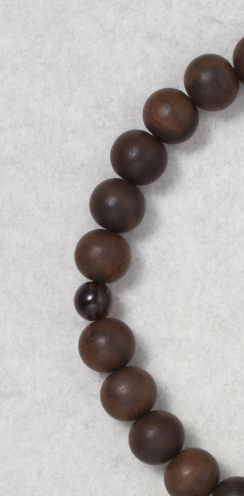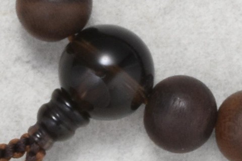 主玉は、ケシシャム柿を使用しています。道具は茶水晶です。