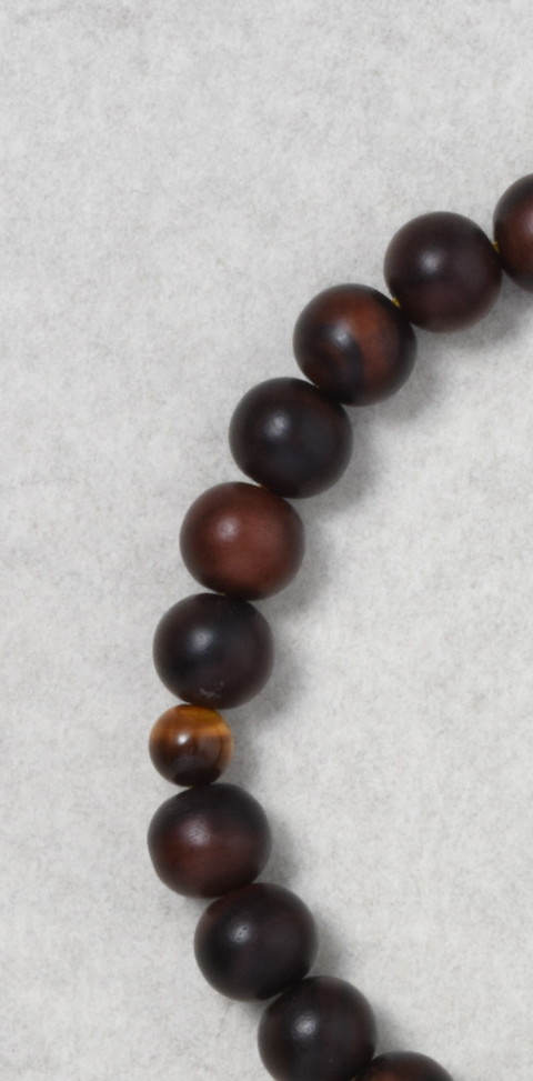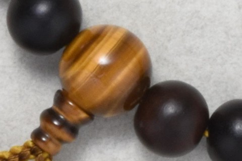主玉は、艶消しの縞黒檀を使用しています。道具は虎目石です。