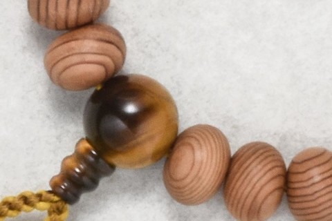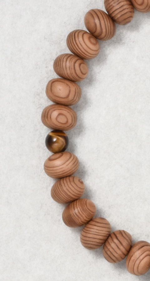 主玉は、屋久杉を使用しています。親玉・二天は虎目石です。
