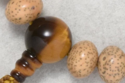 主玉は、粒選りの星月菩提樹を使用しています。親玉・二天は虎目石です。