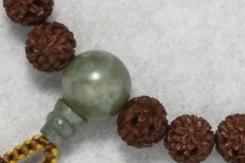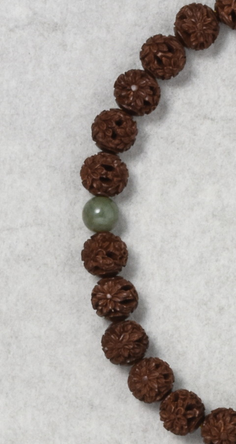 主玉は、菊彫りを施したつげを使用しています。親玉・二天は独山玉です。