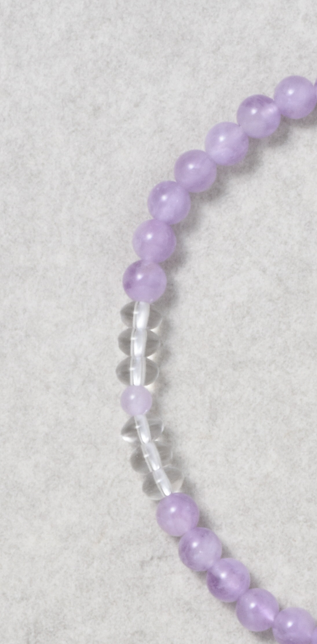 主玉は藤雲石で、両脇に7個づつの水晶玉をあしらっています。