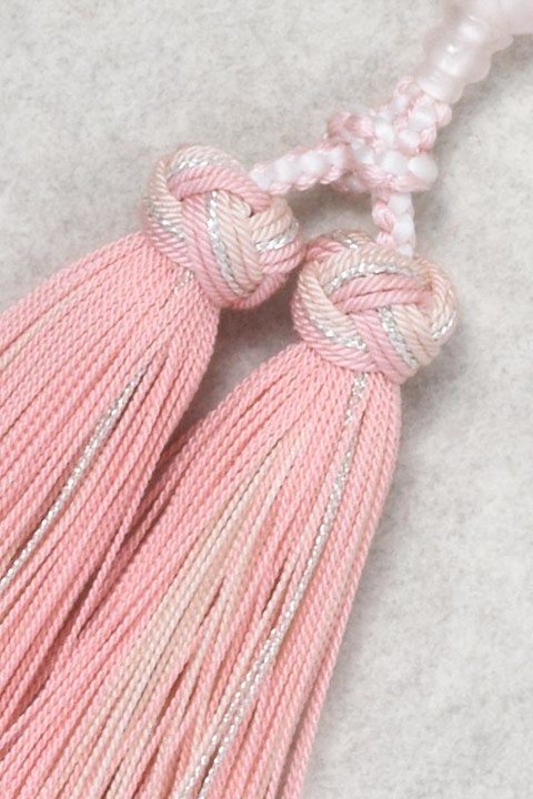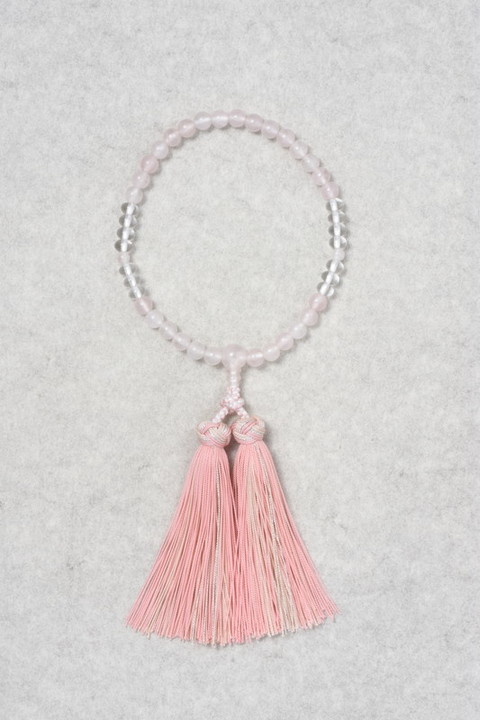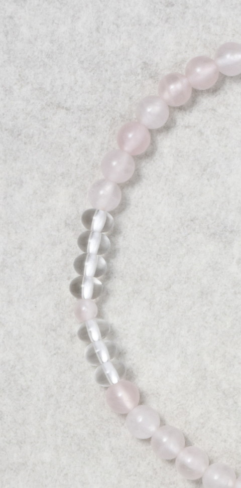 主玉はローズクォーツで、両脇に7個づつの水晶玉をあしらっています。