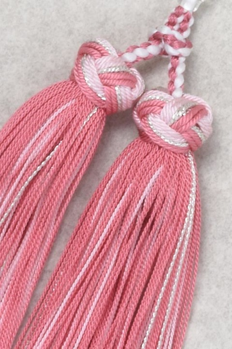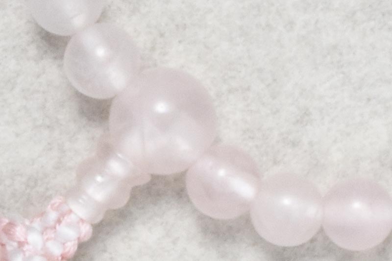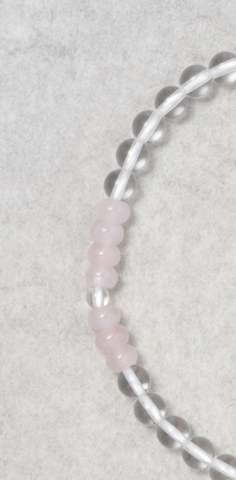 主玉は水晶で、両脇に7個づつのローズクォーツの玉をあしらっています。
