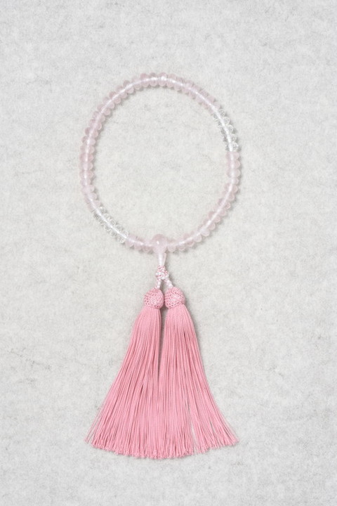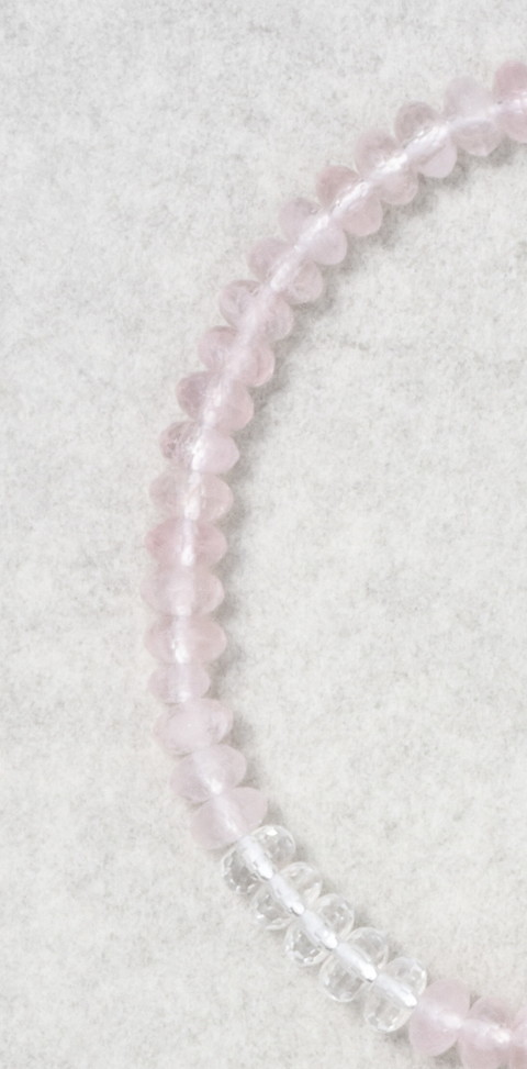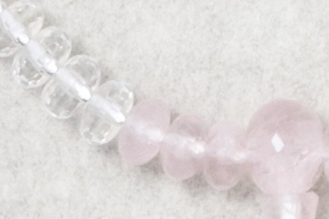 主玉はローズクォーツで、両脇に5個づつの水晶を、斜めにあしらっています。