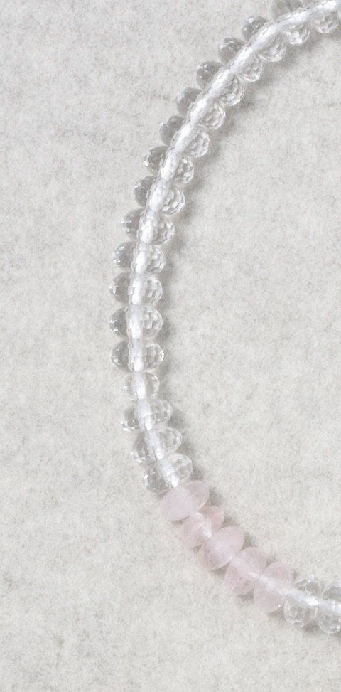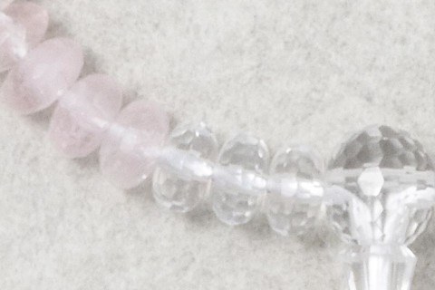 主玉は水晶で、両脇に5個づつのローズクォーツを、斜めにあしらっています。