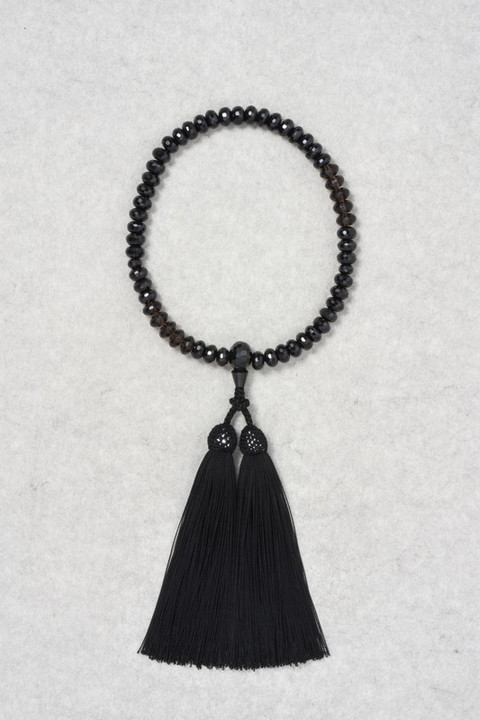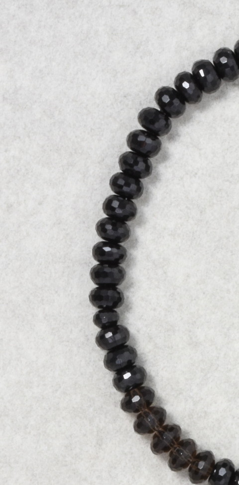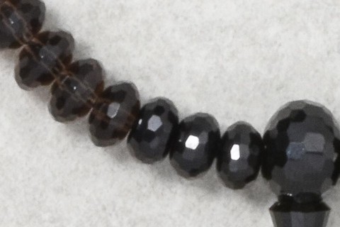 主玉はブラックスピネルで、両脇に5個づつの茶水晶を、斜めにあしらっています。