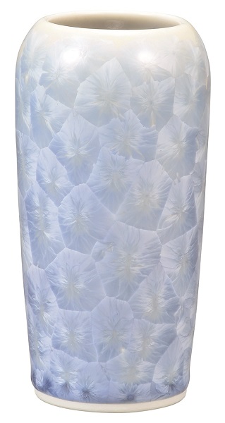 清水焼の花立です。【花結晶Ⅱ】水縹をイメージさせる仕上げです。