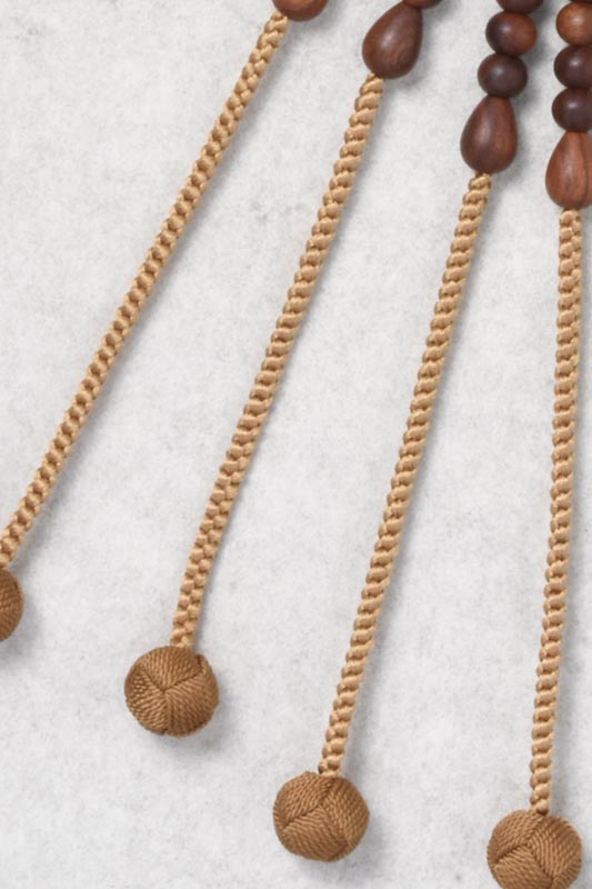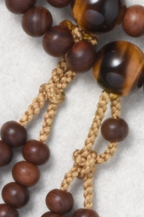 主玉は、艶消しの栴檀を使用しています。親玉・四天は虎目石です。