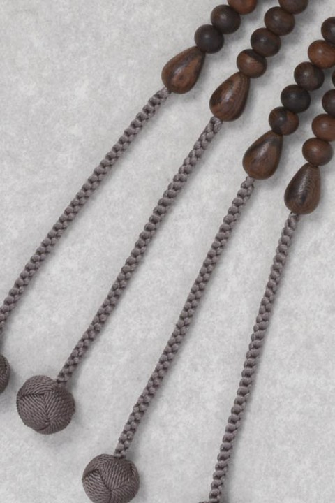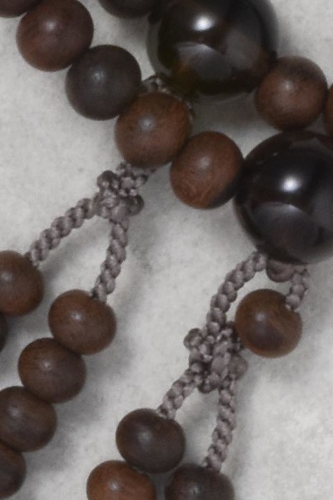 主玉は、艶消しのシャム柿を使用しています。親玉・四天は茶水晶です。
