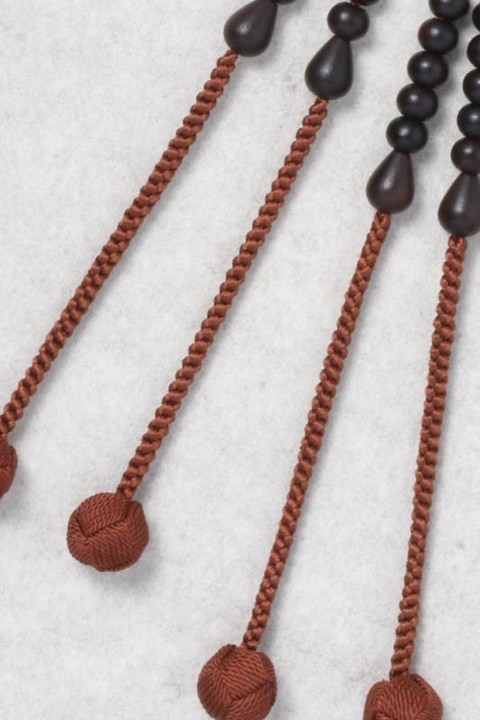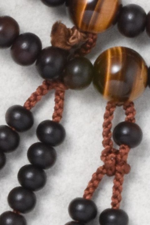 主玉は、艶消しの縞黒檀を使用しています。親玉・四天は虎目石です。