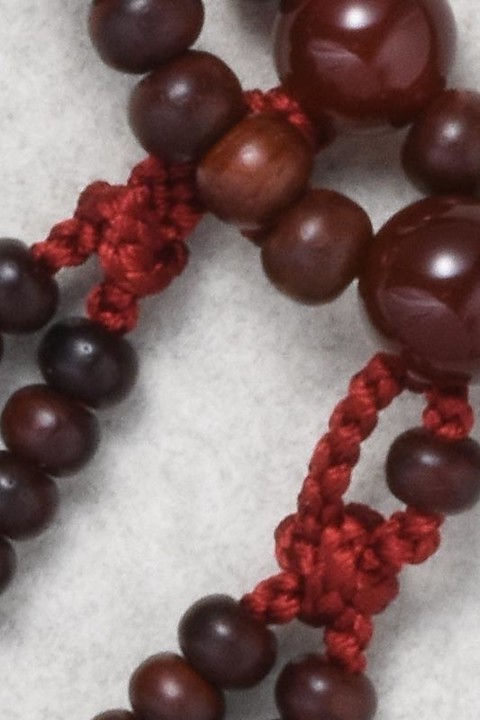 主玉は、艶消しの紫檀を使用しています。親玉・四天は瑪瑙です。