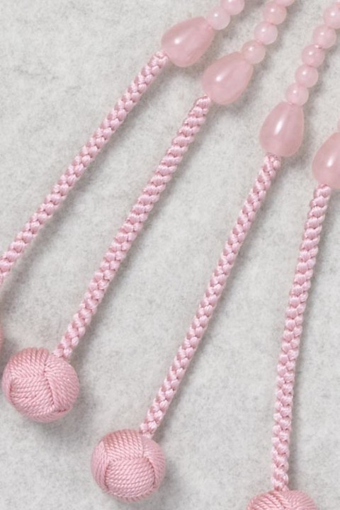 主玉・親玉・四天すべて、ローズクォーツを使用しています。