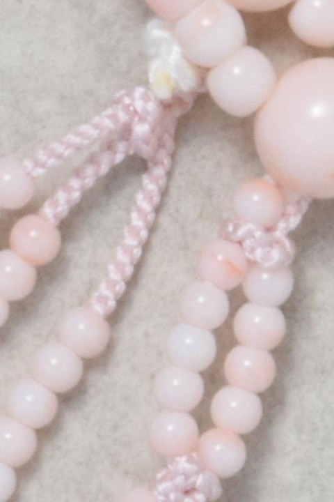 玉はピンク珊瑚の模造品で、お値打ち価格です。