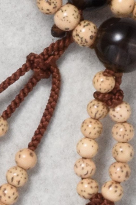 主玉は、粒選りの星月菩提樹を使用しています。親玉・四天は茶水晶です。