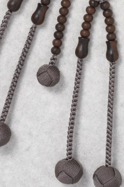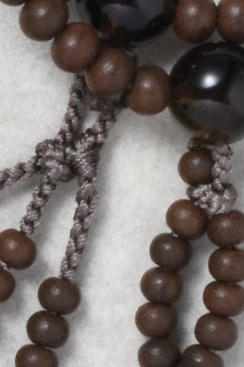 主玉は、艶消しのシャム柿を使用しています。親玉・四天は茶水晶です。