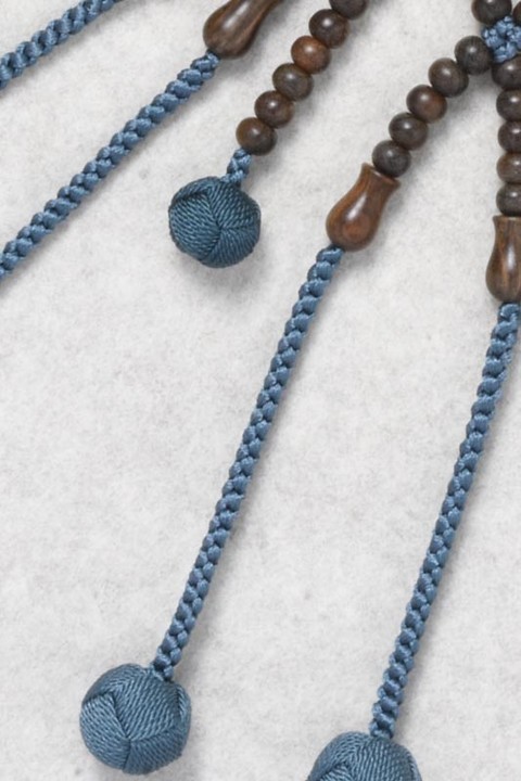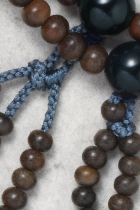 主玉は、緑檀を使用しています。親玉・四天は青虎目石です。