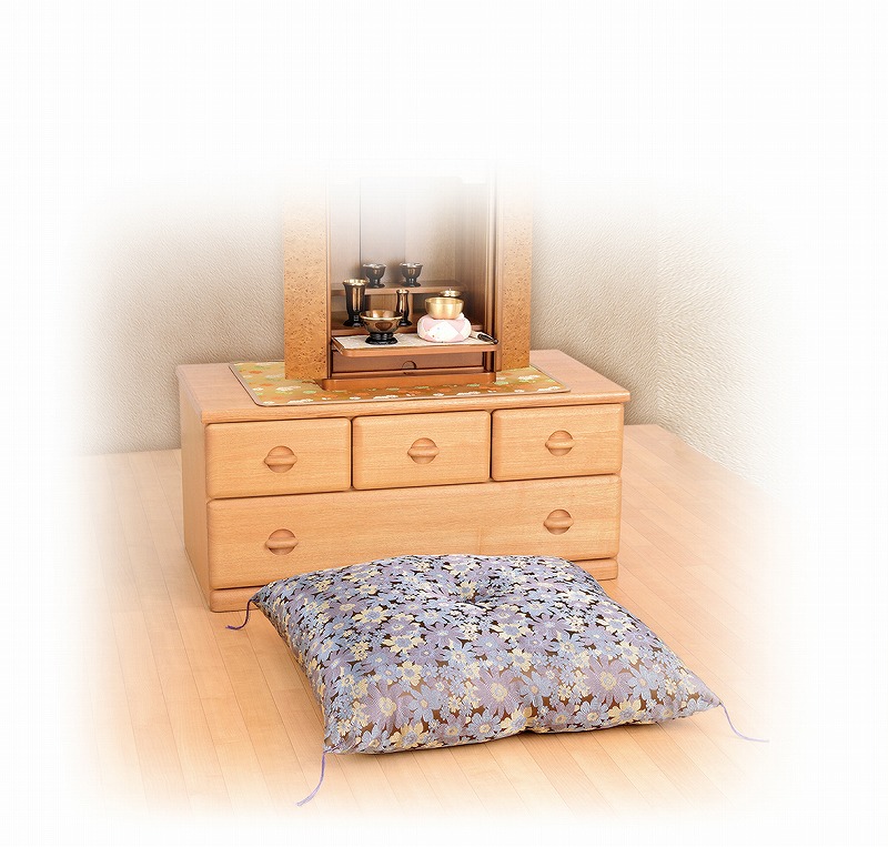 お仏壇の前に置く、和尚様やお客様をお迎えする座布団です。フローリングにもマッチします。設置例の画像はイメージです。