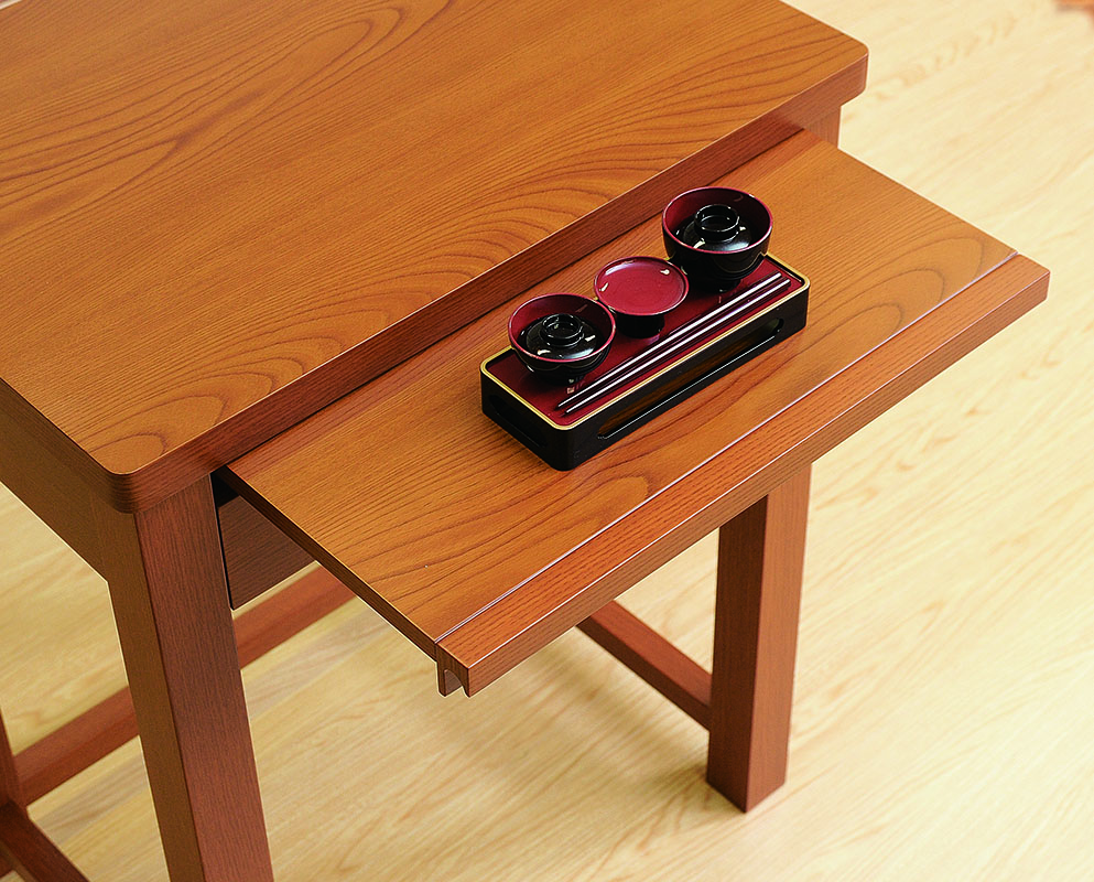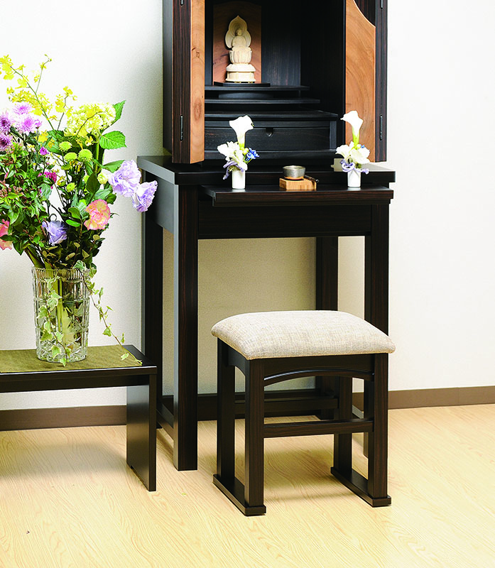 デスク型の仏壇を置く台です。膳引き・引出しが付いています。