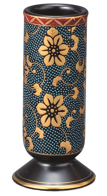 九谷焼の花立です。【望・のぞみ】瑠璃鉄仙です。
