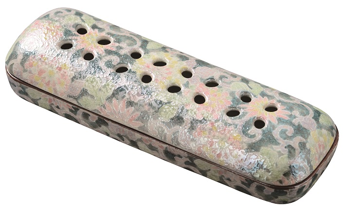 陶器 寝かせる線香皿【有田焼 花摘】大 色唐草(網入)