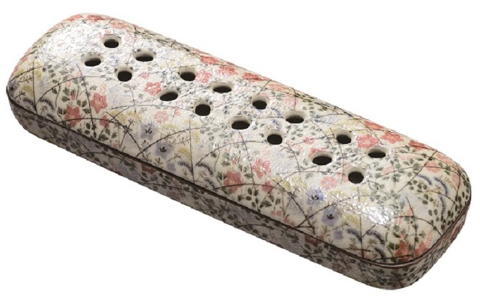 陶器 寝かせる線香皿【有田焼 花摘】大 舞萩(網入)