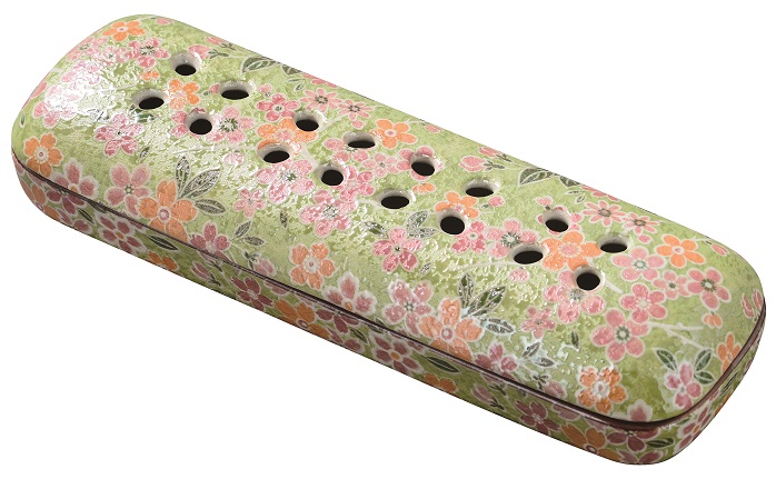 陶器 寝かせる線香皿【有田焼 花影】大 小花(網入)