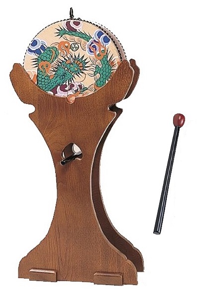 せん法太鼓に、栓材の背高置台と倍が付いたセットです。
