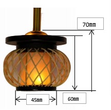 付属の電装を接続して、お仏壇内天井にヒートン金具で吊るして頂き、すぐに使用ができます。お仏壇の欄間から少し下に灯篭部分が出るように位置調整をします。(パイプが伸縮します)飾り付け例写真はイメージです、お仏壇サイズにより見え方は異なります。寸法図をご参照に、お手持ちのお仏壇でお合わせください。お仏壇は20号以上が最適です。( 写真のお仏壇は23号です)