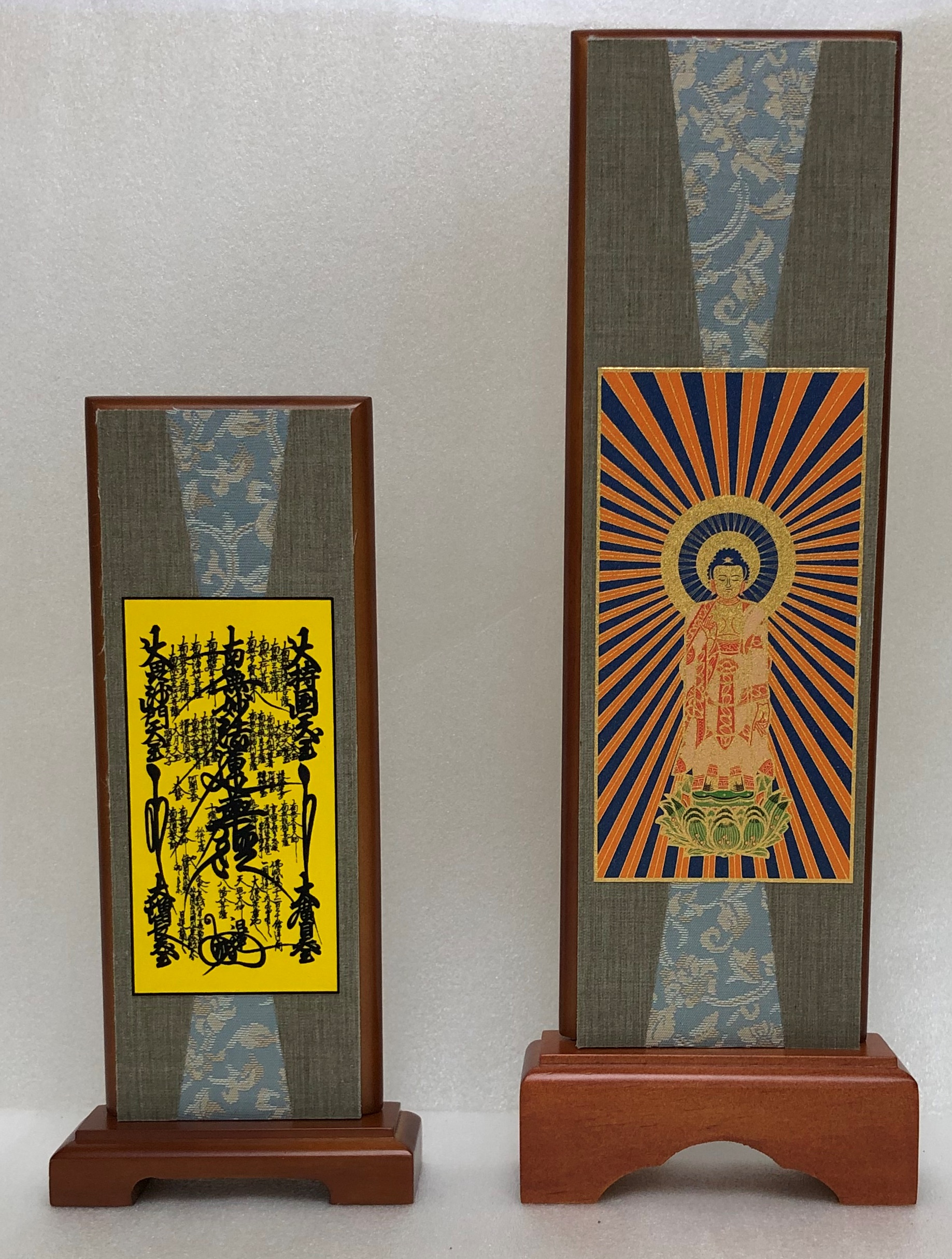 スタンド型です。ご本尊の【阿弥陀如来】様です。真言宗・天台宗等のご本尊です。本紙は両面テープの接着です。