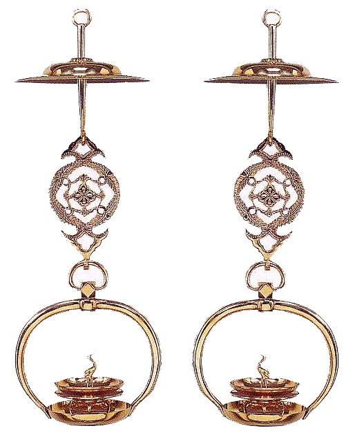 金メッキをかけた真鍮製の本山輪灯です。