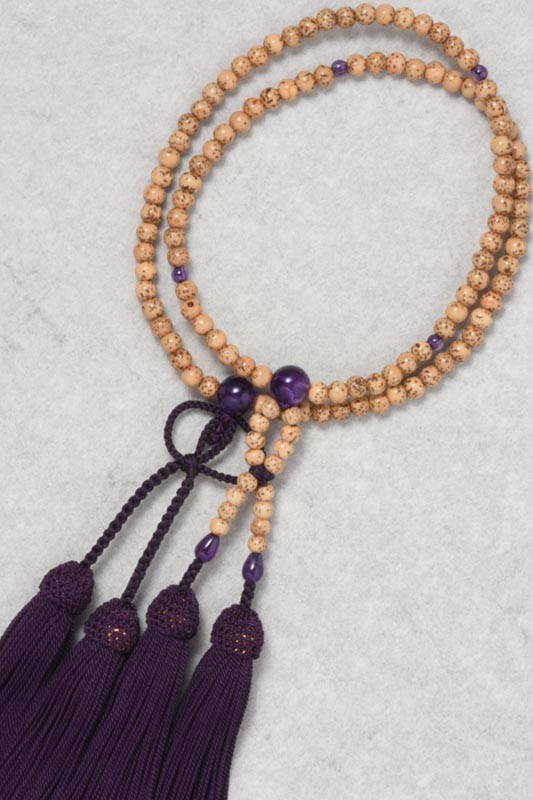 数珠 浄土真宗【星月5mm】二輪(門徒用)紫水晶仕立 正絹頭房