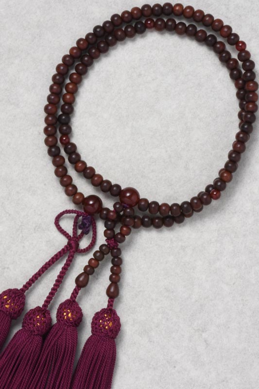数珠 浄土真宗【艶消し紫檀5mm】二輪(門徒用)瑪瑙仕立 正絹頭房