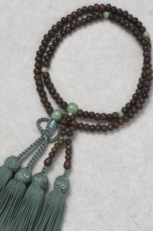 数珠 浄土真宗【緑檀5mm】二輪(門徒用)独山玉仕立 正絹頭房