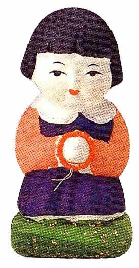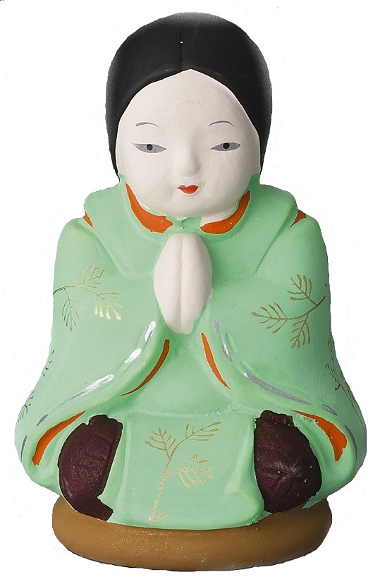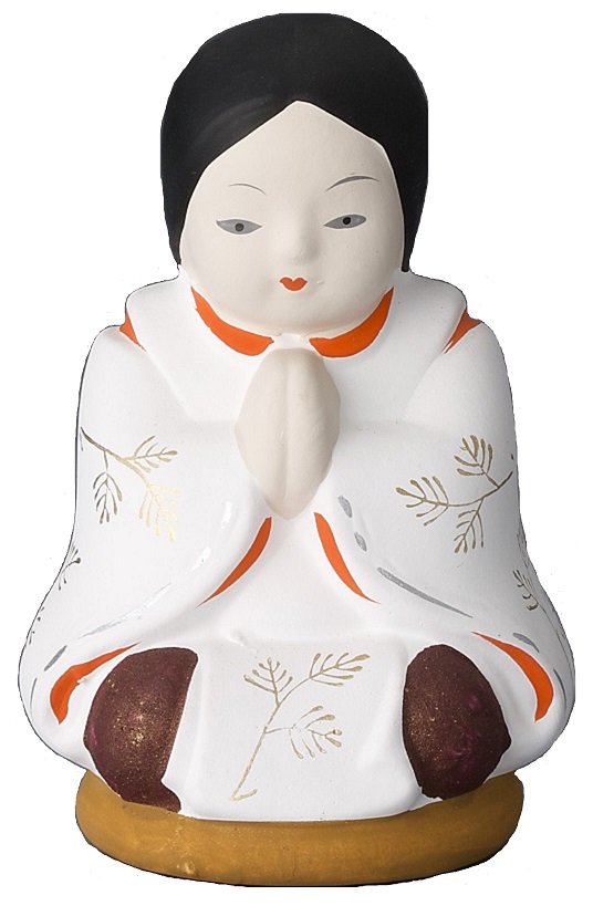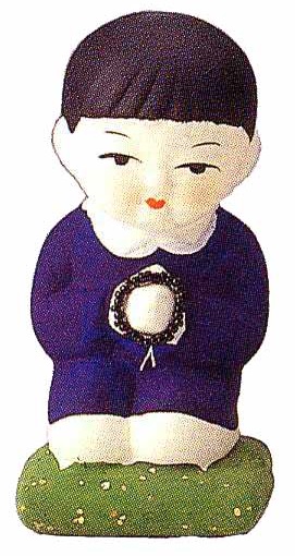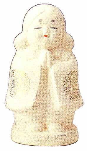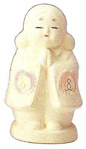 陶器【合掌童子】抱き牡丹紋入 小(2体)
