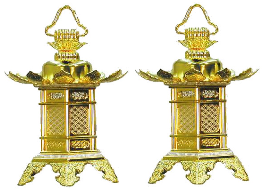 神前灯篭【組胴 丁足・ギボシ】金メッキ 2寸5分(一対)(在家用)21’