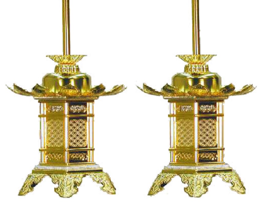 神前灯篭【組胴 丁足・パイプ】金メッキ 2寸5分(一対)(在家用)21’