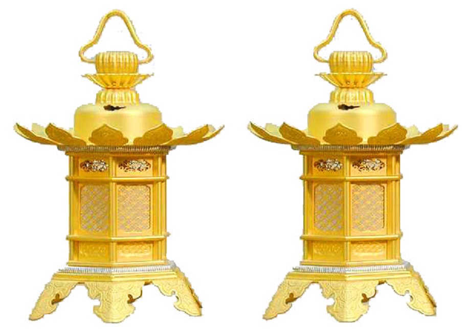 神前灯篭【組胴 丁足・ギボシ】金メッキ 2寸(一対)(在家用)21’