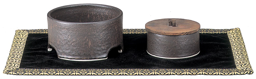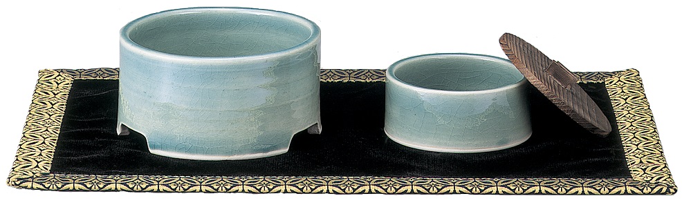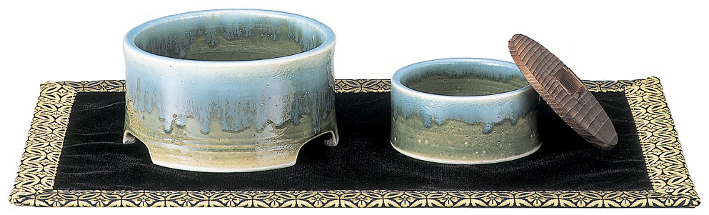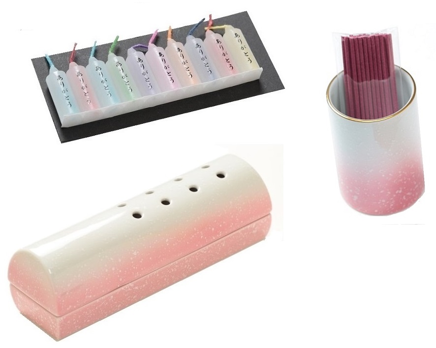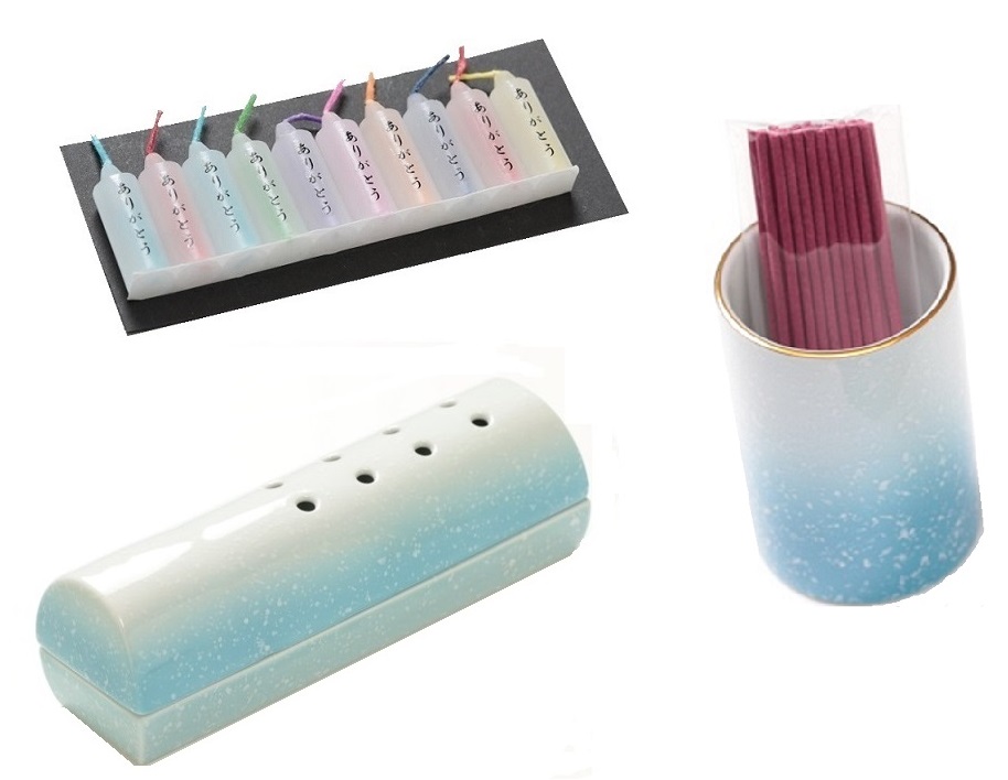 有田焼です。ミニろうそく10本と1ヶ月分のお線香がついています。